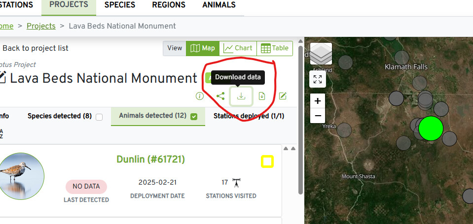 Regardless of what animals or species I select, or what project I am under, the resulting download is full of detections from other stations under stationName and other species.