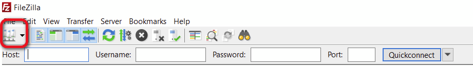 Open FileZilla and click the Site Manager button (or select it from the menu File > Site Manager).