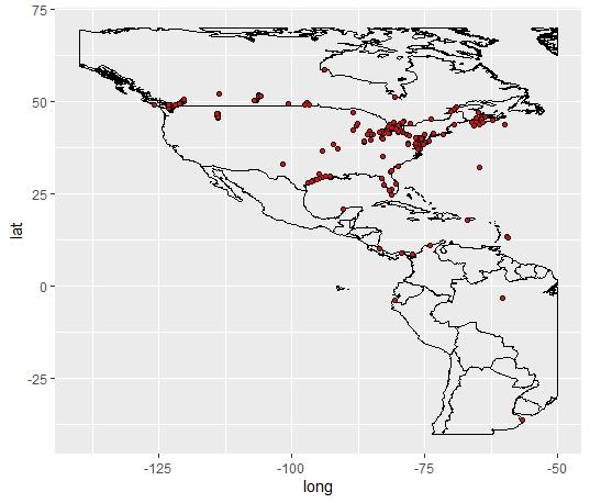 I am trying to plot all active receivers in R, but it seems like not all active receivers show up in my plot (especially recent ones seem to be missing). I am updating the data I am downloaded regularly and use code from the Motus R book (see below).