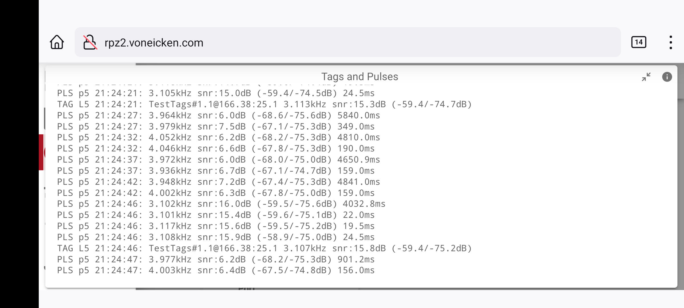 | TAG PULSES | SIG | NOISE | SNR |