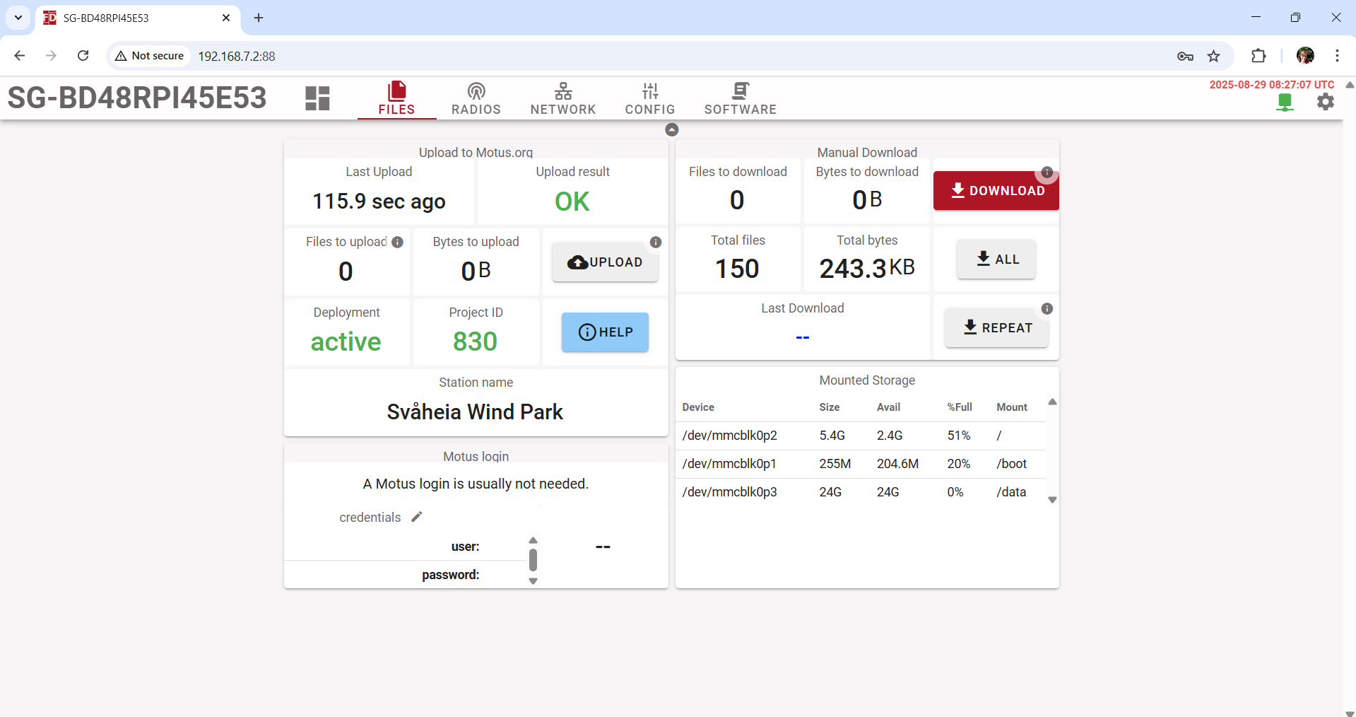 I took a look at the logs, thanks for keeping the SG powered and managing to reconnect it periodically: this allowed the logs for the periods without connectivity to upload.