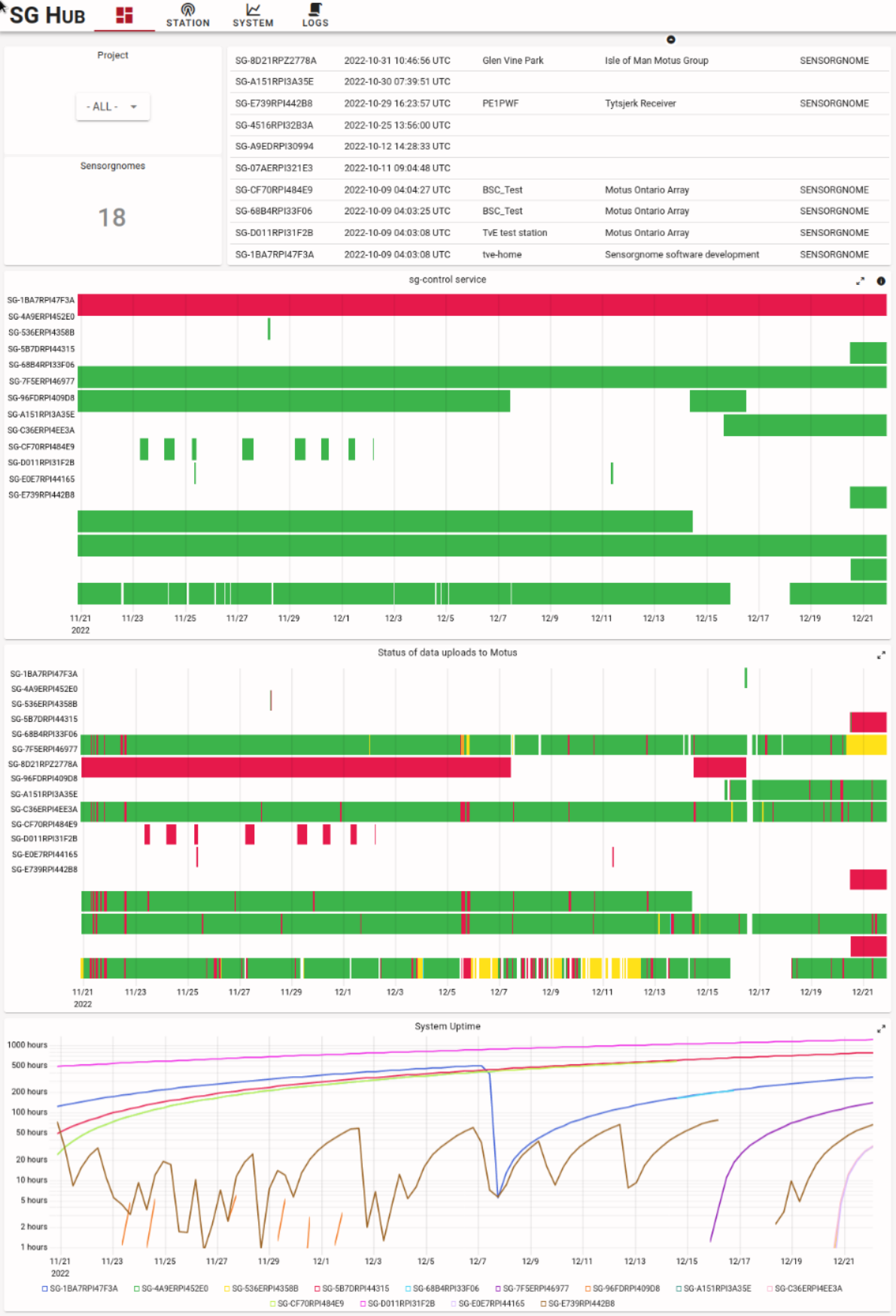 - naming: the ‘short name’ previously used to identify stations has been removed per request from BofC (“too many names for the same thing”), instead, the station name is used where possible/appropriate else the Sensorgnome ID is shown